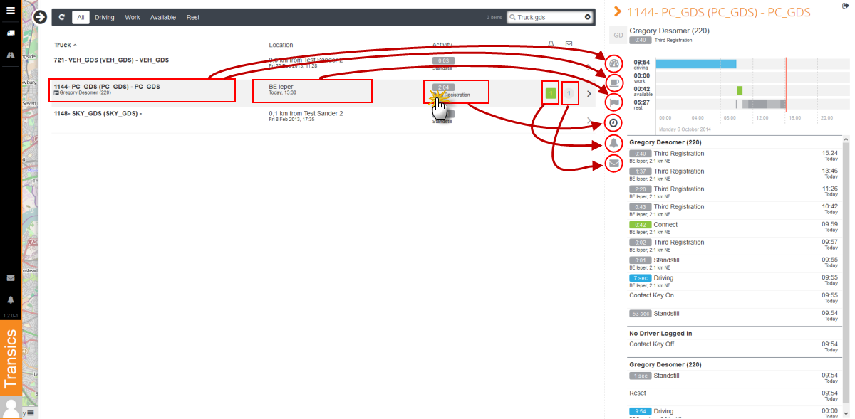 List overview of activities per driver. |