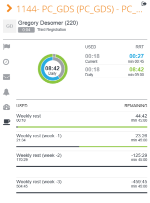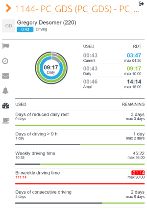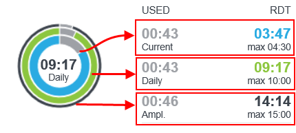 The remaining driving times (4h30 and daily) and the amplitude are displayed in a circle diagram: