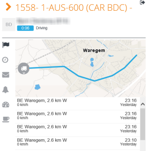 Overview of most recent vehicle locations. The map displays the travelled route of the last day. Note: This overview can also be accessed by clicking a vehicle icon on the map in the main screen. |